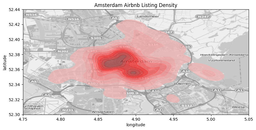 Objective: This project focuses on conducting a spatial analysis of Airbnb listings in Amsterdam. The analysis aims to explore the impact of Airbnb on residential communities by examining the spatial patterns and relationships within the dataset.