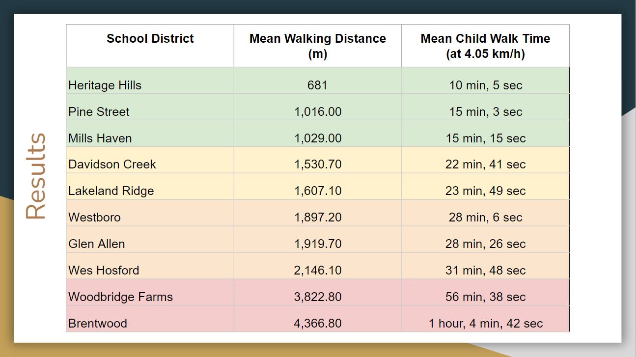 My background in urban planning was drawn upon to make observations on the results and make recommendations that were then sent to the school board.